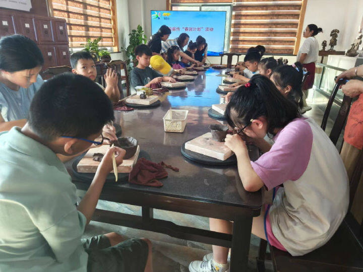 繆家村的孩子們正在手工製作泥塑(sù)(曾慶華(huá) 攝)