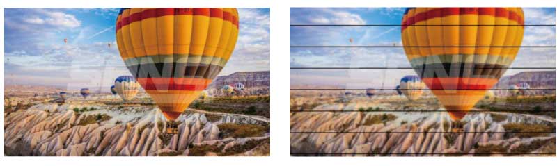 如(rú)下圖所示,DLP/LCD拚接屏存在明(míng)顯的(de)畫麵(miàn)接縫(féng)和一致性問題,而小(xiǎo)間距LED無縫拚接技術實(shí)現了拚接麵積上的限製,克服(fú)了LCD拚(pīn)接明顯的通病。