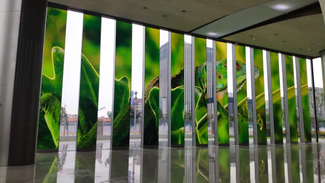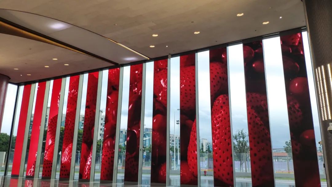 屏體超輕(qīng)薄、超通透,高亮度和清晰的畫質,立於前(qián)觀(guān)看,畫麵就像(xiàng)懸浮於玻璃幕牆之(zhī)上,具有很強的(de)視覺震撼感。
