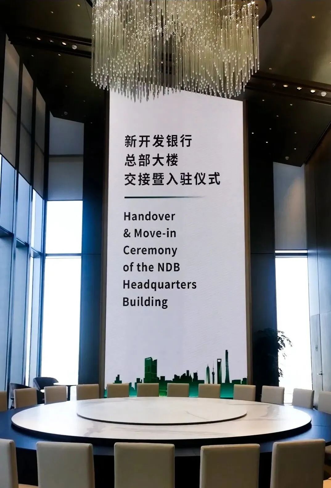 金磚(zhuān)銀行(háng)總部大樓總建築麵積12.6萬平方米,於2021年9月投入使用,能滿足約2500人的辦公需求。整棟建築的建造體(tǐ)現以人為本(běn)、綠色生態和新開發銀行“創新、平等、透明、可持續發展”的價值理念,建築主(zhǔ)體形(xíng)象突出、識別(bié)度高,已(yǐ)成為黃浦江沿岸又一地標性建築。