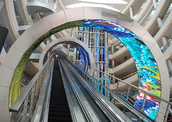查看詳細 >>新型基板材料的柔性(xìng)LED顯示屏引發行業關注,該技術(shù)突破傳統剛性(xìng)屏體的物理限製,實現30°-150°範圍內的自由彎曲,同時保持4K級顯示精度。通過創新性的模塊(kuài)化(huà)設計,屏幕(mù)可適配圓柱、球麵等異形結構,其(qí)厚度較(jiào)常規產品減少約40%,為特殊場景安裝提供更多可能性。現場演示(shì)中,曲(qǔ)麵屏在動態(tài)彎折狀態下仍(réng)保持穩定(dìng)的色彩還原度(dù)與刷新率(lǜ)表現。