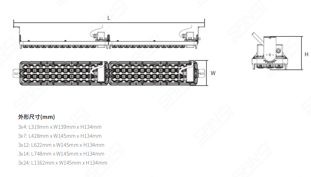 不調光/RS485/PWM/0~10V/0~5V/PLC | 鋁本色(sè)RAL9006 | L70 125000小時(shí)(環境溫度(dù)在25℃)* | -40℃~+55℃ |
